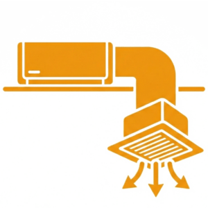 La solution « invisible » et haut de gamme. Le système est dissimulé dans les combles ou faux-plafonds ; seules des grilles de diffusion discrètes sont visibles. C’est le choix privilégié pour préserver le design intérieur et assurer un confort acoustique optimal.